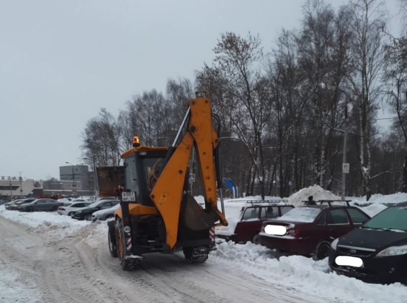 Спецтехнике приходится маневрировать между автомобилями, чтобы их не задеть. Работу ведут сотрудники МКУ «Спецавтотранс».