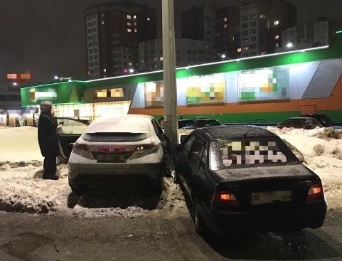 В результате столкновения двух машин одну из них откинуло на световую опору. ДТП случилось вечером 21 января на Шекснинском проспекте, 23А.