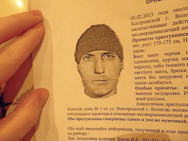 Сейчас поисками подозреваемого ежедневно занимаются около 200 полицейских. Также отрабатываются все ранее судимые за аналогичные преступления вологжане. Среди особых примет следователи отмечают татуировку, предположительно, в виде оскала животного или дракона.