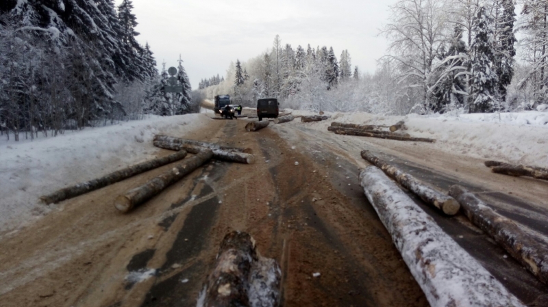 Видео с авторегистратора, снятое на трассе Чекшино-Тотьма появилось в группе «Автомобильная Вологда». В кадре видны бревна , которые слетели на ходу с лесовоза и катятся наперерез машинам.