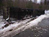 Большегруз перевернулся в Вологодской области.