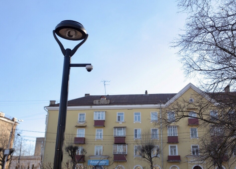 Суперсовременный объект установили на площади Металлургов. Светодиодный фонарь выполняет не только свою основную функцию и служит опорой для камеры видеонаблюдения.