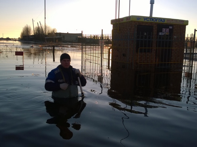 В зоне эксплуатационной ответственности Великоустюгской ремонтно-эксплуатационной службы (ВУ РЭС) АО «Газпром газораспределение Вологда» под водой оказались 14 пунктов редуцирования газа, около 80 км подземных газопроводов, 10 станций электрохимической защиты, 25 подземных колодцев, 10 надземных киосков отключающих устройств.
