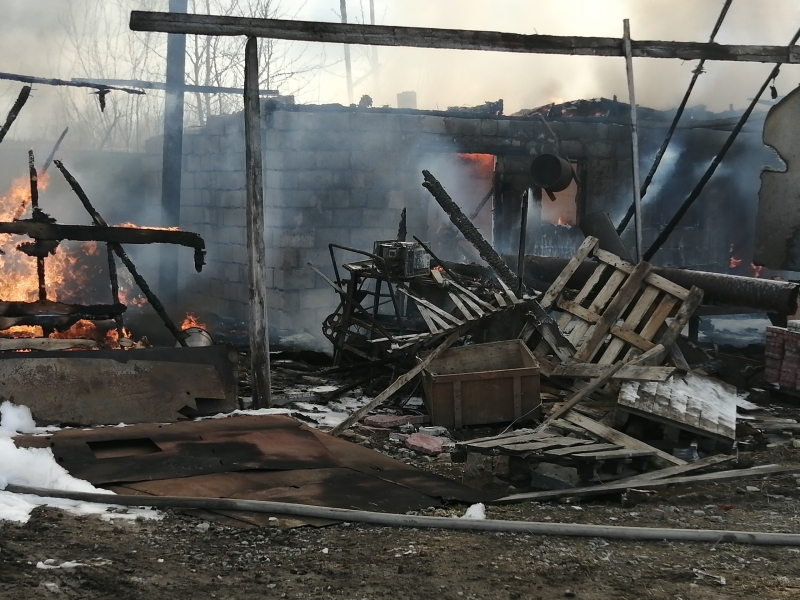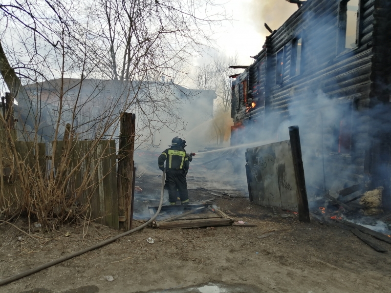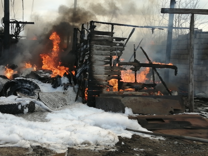 Неизвестные подожгли расселенный деревянный дом. Порывы ветра увеличили площадь пожара. Огонь добрался до сарая, соседского кирпичного дома и белого Ланд Крузера.