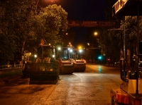Октябрьской. В ночь на 25 мая рабочие заменили верхний слой асфальтового покрытия дороги.