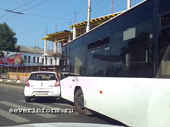 Иномарка и автобус на одной из оживленных улиц Вологды