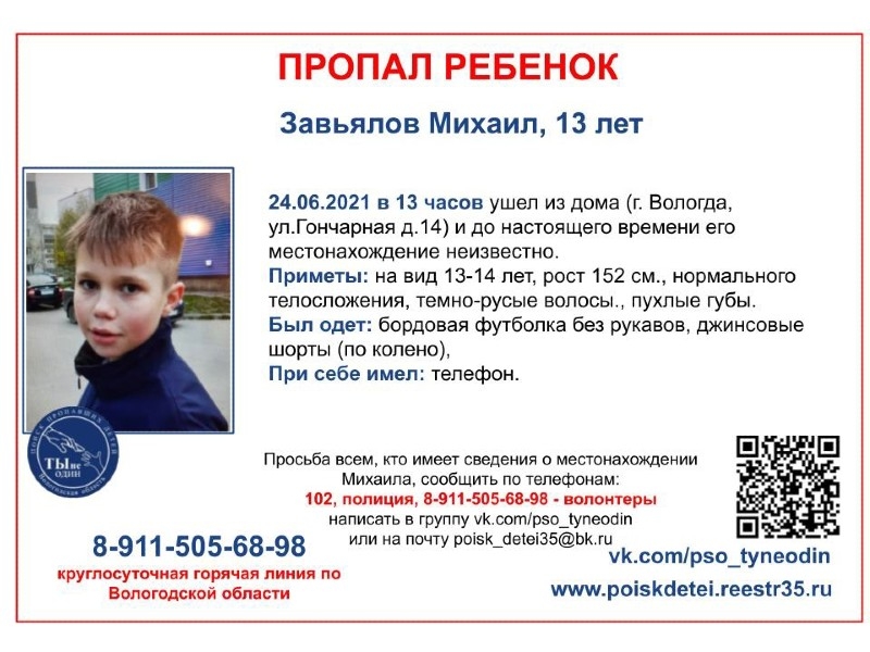 Пропал 13-летний ребенок