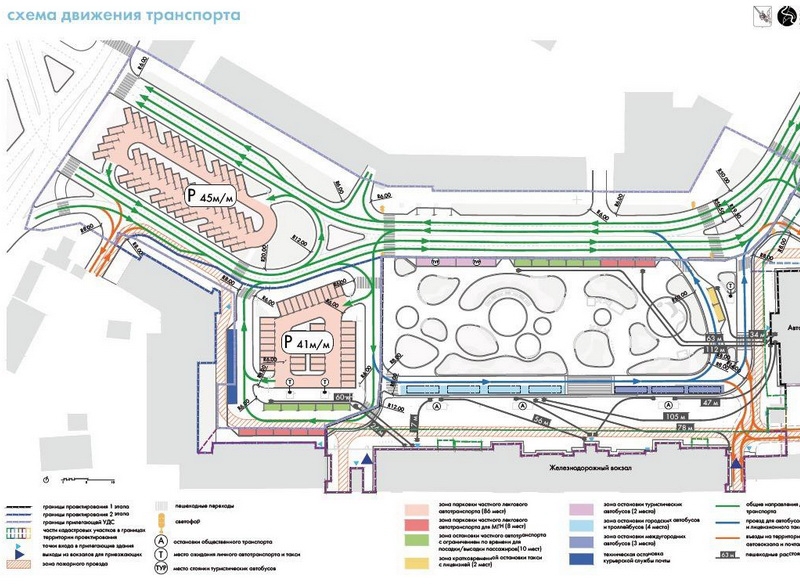 - зоны для остановки туристических, городских и междугородних автобусов, а так же для такси с лицензией.