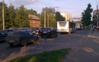 Огромная пробка образовалась на одной из центральных улиц в Вологде