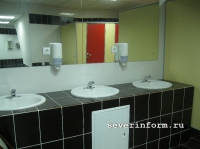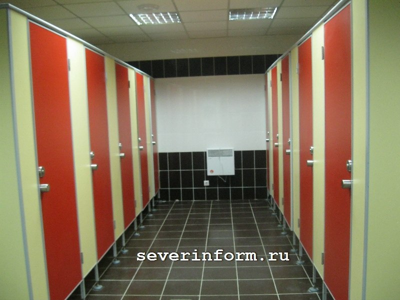В туалете 12 кабинок для женщин и столько же для мужчин