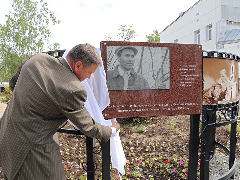 Памятный знак, посвященный Василию Шукшину и фильму «Калина Красная» открыли в Белозерске 25 июля. Это событие было приурочено к 85-летию со дня рождения известного актера и кинорежиссера, а также 40-летию выхода в свет его легендарной картины.