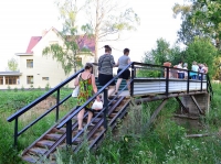 отремонтировали. Были проведены работы по замене старых досок, появились металлические ступеньки. Также укрепили основание моста, сообщает