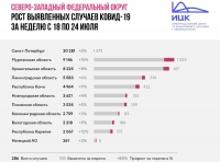 Информационный центр по мониторингу ситуации с коронавирусом посчитал, как изменилось число выявленных заболевших на Северо-Западе за неделю с 18 по 24 июля.