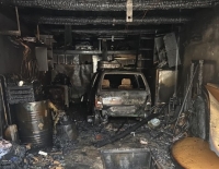 Огонь повредил бокс и находящиеся там машины. Пожары произошел в 17:38 в понедельник, 24 июля.