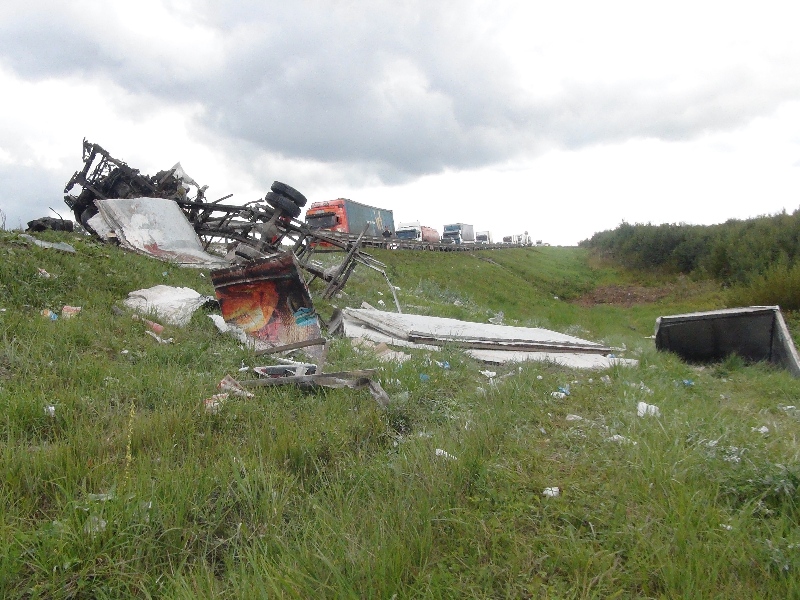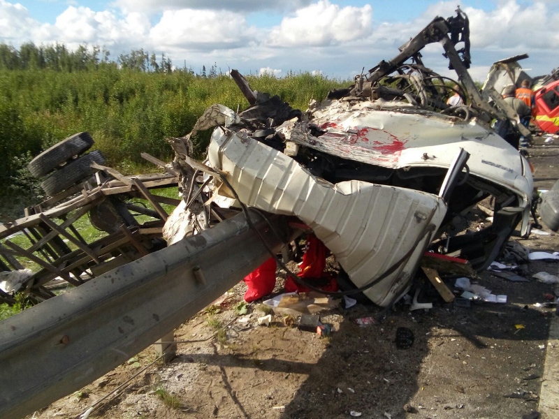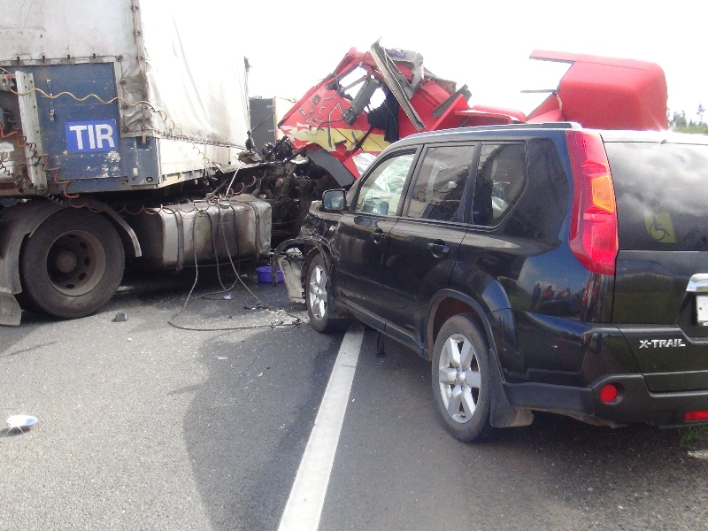 Напомним, авария произошла около 12 часов на 380 километре трассы "Москва-Архангельск". По предварительной информации УМВД России по Вологодской области, водитель грузовика MAN выехал на встречную полосу и столкнулся с автомобилем Hyundai. После этого в грузовик MAN врезался автомобиль Nissan, который двигался в сторону Ярославля.