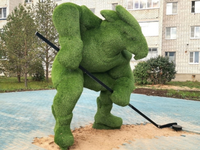 Новый арт-объект под условным названием «Хоккеист» появился в сквере «Сокол-Арена».