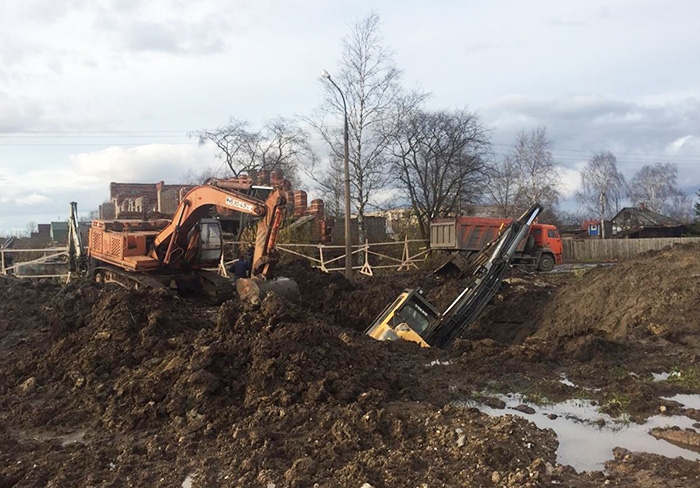Экскаватор, провалившийся под землю в Соколе, достали из «трясины»