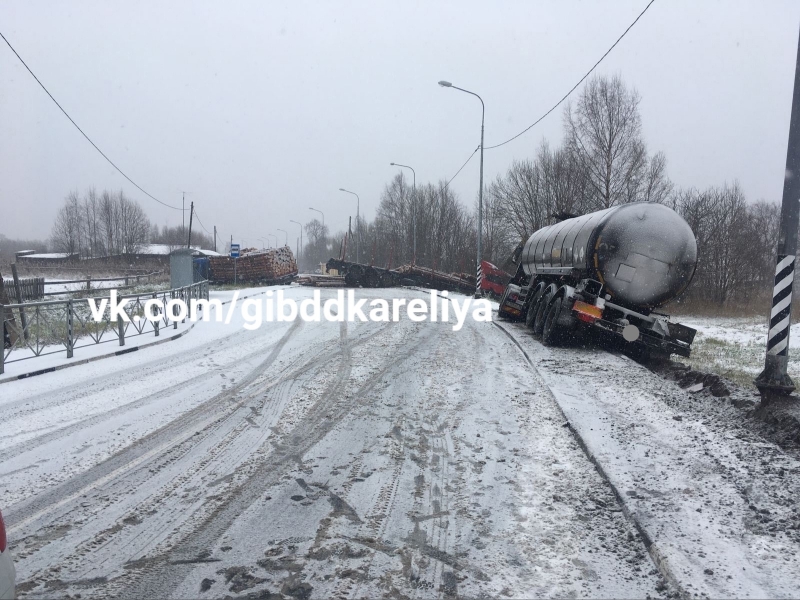 Автокатастрофа с участием трех большегрузов произошла сегодня в Пудожском районе, на 419-м км федеральной автодороги А-119 «Медвежьегорск — Вологда» .