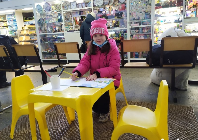 На вокзале сделали уголок со столом, на котором лежат бумага, карандаши, фломастеры. Дети могут или сами нарисовать картинку, или разрисовать заготовку, пишет группа Автовокзал35Вологда.