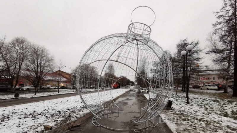 Прошлогоднюю ненадежную конструкцию подрядчик заменил по гарантии. И теперь новогодний шар переедет с проспекта Победы, где был прописан ранее, на территорию возле «Ленкома».