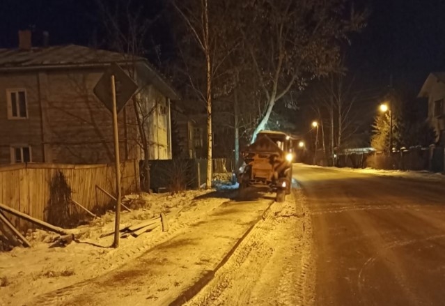 20 единиц техники убирали улицы заснеженной Вологды ночью