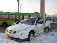В Череповце иномарка протаранила столб