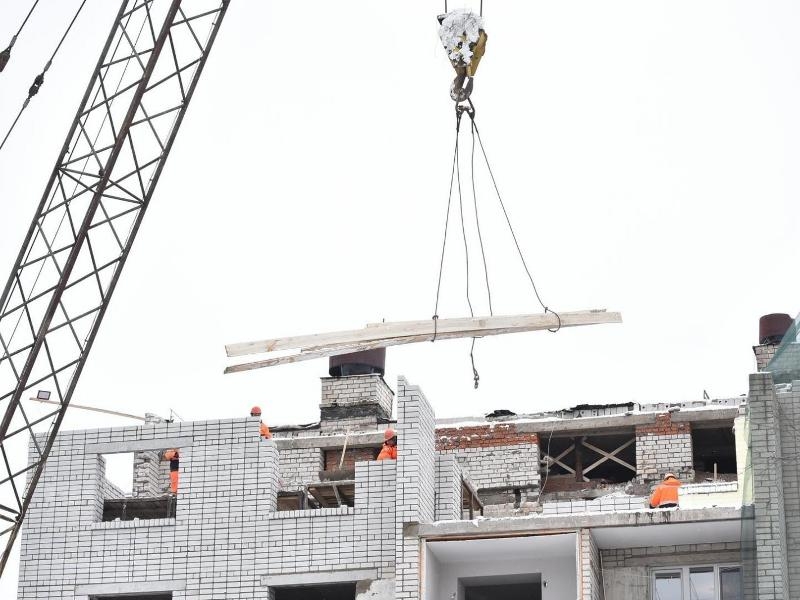 Ремонтные работы в доме на Карла Маркса, 74а идут ежедневно в две смены. Как сообщает городская администрация, кладка стен пятого этажа уже завершена, ведется монтаж плит перекрытия и технического этажа здания. На четвертый этаж начали проводить коммуникации.