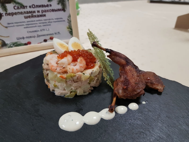 "Оригинальный рецепт приготовления этого блюда не сохранился, поэтому на суд жюри были представлены всевозможные вариации новогоднего угощения. После дегустации эксперты конкурса определили самый вкусный салат. Им признали оливье в исполнении Натальи Денисенко, работающей в столовой АГЦ1,2. Его главным преимуществом стало то, что всё ингредиенты были не вареные, а печеные. Ещё одной изюминкой блюда стал оригинальный соус с кинзой", - описал конкурс и победителя генеральный директор дивизиона "Северсталь. Российская сталь" Евгений Виноградов.