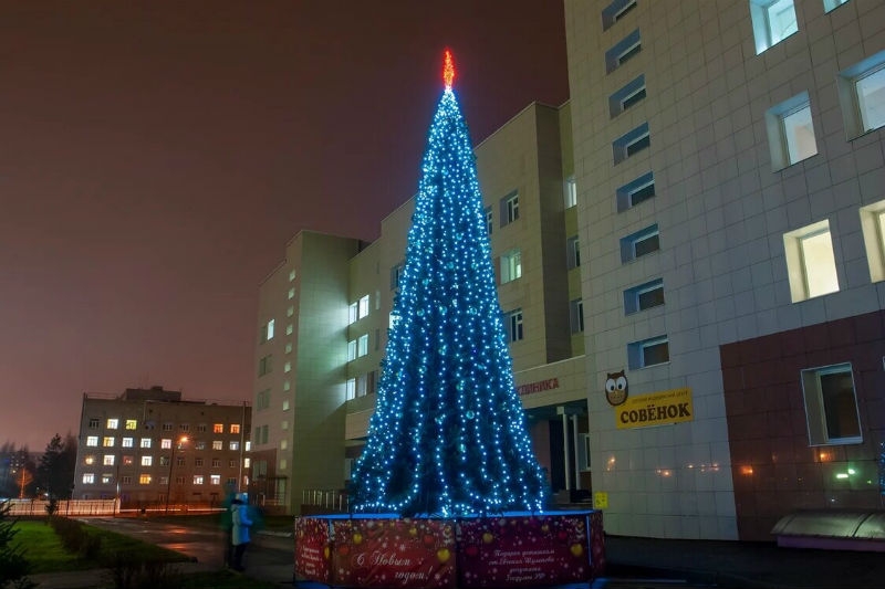 Высота искусственной ели 10 метров, ее украшает 100 больших золотых шаров. На макушке дерева сияет звезда. Елка вызывала интерес не только у маленьких пациентов больницы, для которых сейчас главное развлечение смотреть в окно. Она привлекла внимание и прохожих вологжан. Как рассказали врачи клиники газете "Наша Вологда", елка уже стала популярной фотозоной. Около нее фотографируются и дети, и взрослые, сообщает ИА "СеверИнформ".