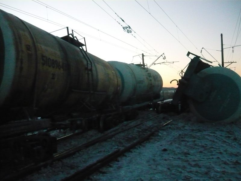 Около часа назад на место крушения прибыл пожарный поезд из Харовска. Впрочем, как уверяют спасатели, угрозы возгорания разлившегося топлива нет. Сейчас спасатели на всякий случай охлаждают неповрежденные цистерны.