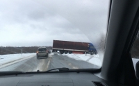 Это произошло в первой половине дня на границе Шекснинского и Вологодского районов. Судя по всему, водитель фуры не справился с управлением и его развернуло на дороге. Кабину вынесло в кювет, а прицеп остался на проезжей части. Движение по трассе было частично затруднено.