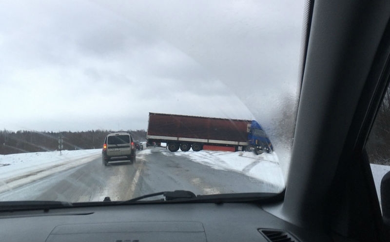 Грузовик съехал в кювет, перекрыв трассу Вологда – Новая Ладога