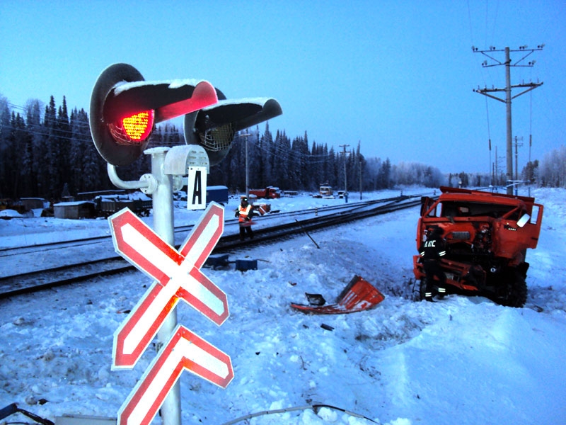 Примерно в час ночи на оборудованном автоматической сигнализацией железнодорожном переезде машина оказалась прямо перед грузовым поездом.