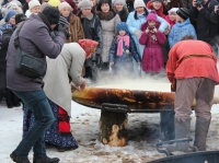 Блин-гигант, диаметр которого составил 1,8 метра, снова испекли в музее «Семенково» под Вологдой в воскресенье, 26 февраля. Впервые, напомним, его приготовили днем ранее. В этот раз Впервые за несколько лет масленицу в музее под открытым небом отмечали в течение двух дней, сообщает ИА «СеверИнформ – Новости Вологды».