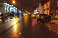 ДТП произошло сегодня в 3.25. Два автомобиля столкнулись лоб в лоб на улице Ленина. Один из них от удара отбросило на дерево.
