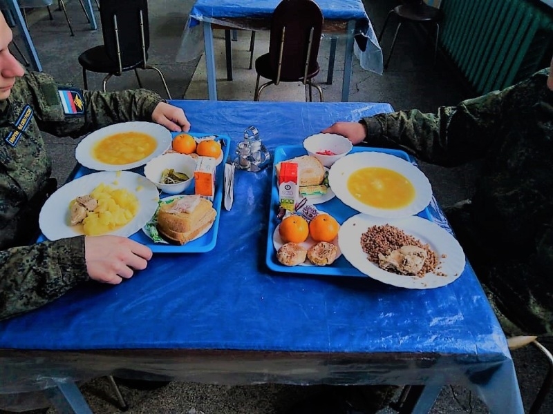 Между тем и в обычные дни питание солдат разнообразное и вкусное. После проведенных реформ армейские столовые стали действовать по системе «шведский стол». Теперь в них работают только гражданские специалисты: технологи и диетологи составляют сбалансированное меню, а повара готовят качественные горячие блюда. Каждый день военным предлагают выбор из нескольких вариантов супов, мясных и рыбных блюд с гарнирами, салатов и напитков. Во время завтраков на линиях раздач всегда присутствуют тефтели, отварное мясо, сосиски, несколько видов каш и особенно полюбившиеся солдатам пельмени. В обед обязательно есть борщ, щи, рассольник, солянка, а на второе – куриное филе, печень, котлеты с макаронами, рисом или гречкой. На ужин обычно готовят легкие рыбные блюда с гарниром из пюре или тушеной капусты.