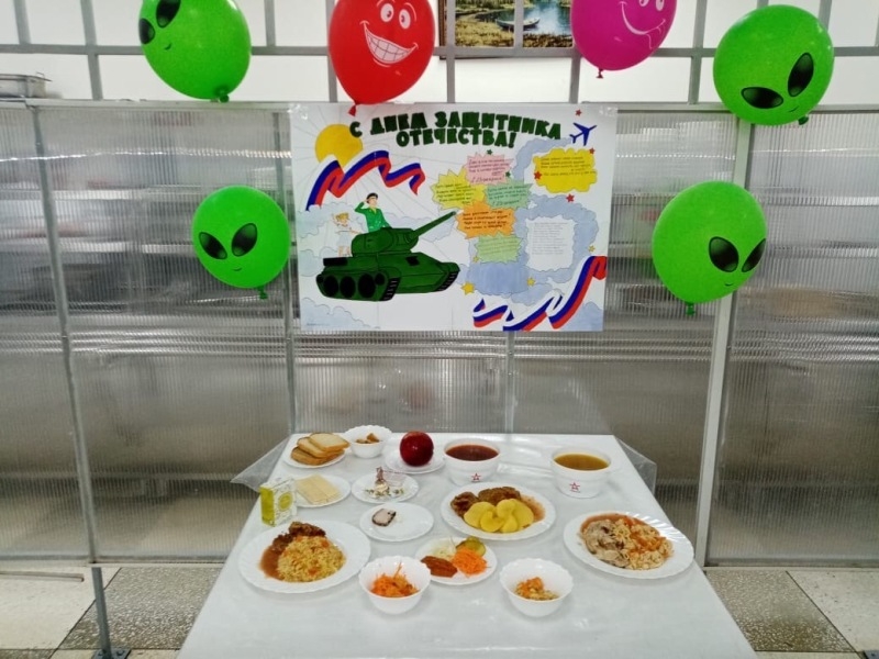 В воинских частях по всей стране 23 февраля отметили по-особенному. В этот день гражданские повара, работающие в армейских столовых, приготовили праздничные угощения и украсили обеденные зоны воздушными шарами и плакатами.