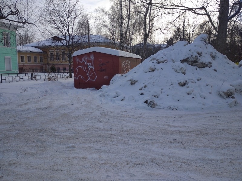 "Сугроб выше металлического гаража. Это снег с тротуара, убранный трактором еще дней 20 назад и не вывезенный до сих пор. При плюсовой температуре он начнет таять и может затопить не только этот двор, но и подвал нашего дома по улице Благовещенская, 31, а также склад декораций Театра для детей и молодежи. Мы уже не раз информировали департамент городского хозяйства", - написала в паблике "Вологда в порядке" Елена Мальвина.