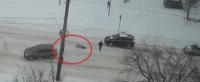 Водитель, совершивший наезд, остановился и пошел в сторону пострадавшей, что-то говоря ей, но та продолжила путь. Вероятно, женщина находилась в шоковом состоянии.