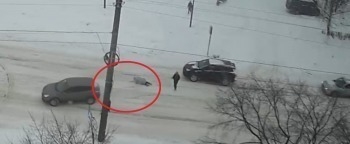 На кадрах видно, как женщины переходят дорогу по нерегулируемому пешеходному переходу. Одна иномарка их пропустила, а другая не снижая скорости, продолжила путь и сбила одну из женщин. Та подлетела, упала, но прочти сразу встала и пошла.