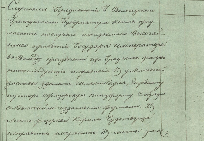 Такой визит требовал большой подготовки. Власти города, в частности губернатор Вологды, не могли оставить без внимания приезд императора и подошли к подготовке и украшению города со всей ответственностью.