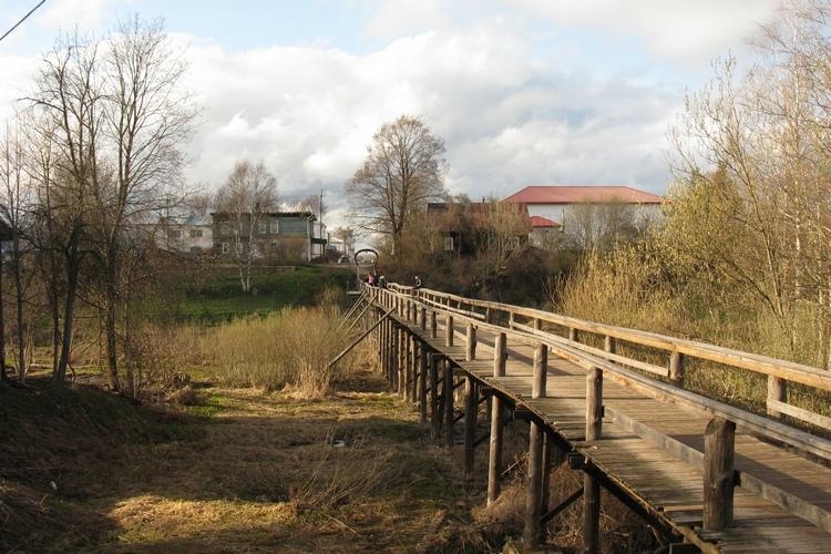 Пешеходный деревянный мост через реку Ворожу - гордость местных жителей. Название, скорее всего, связано с тем, что через него перегоняли коз с одного берега на другой. Но время сделало из него ветхое строение, ведущее к одной из главных церквей города - Благовещенской. У моста сгнили доски, но, не смотря на это, он пользуется спросом у устюжан и интересом у гостей.