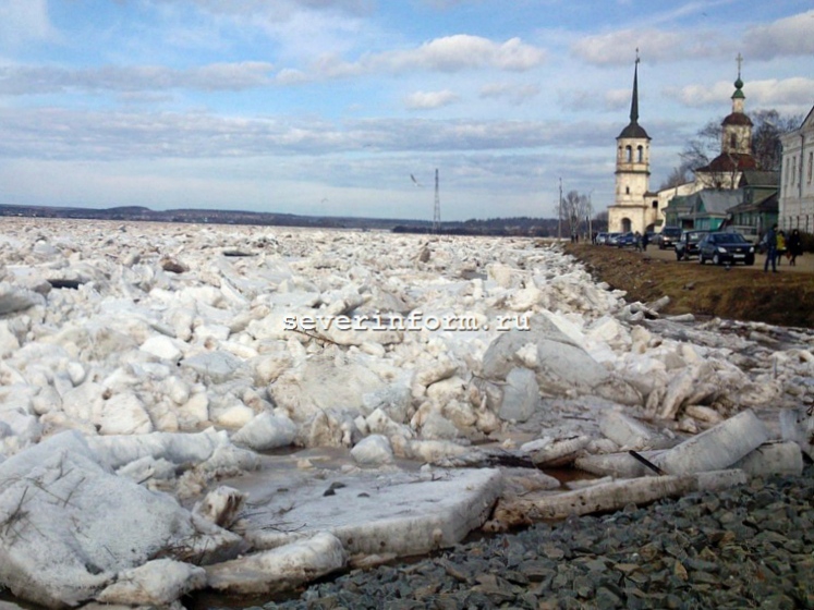 Ледоход от Великого Устюга переместился к границе с Архангельской областью. Спасатели готовятся проводить там взрывные работы.