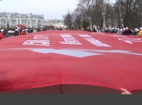 В Вологду доставили 200-метровую копию Знамени Победы