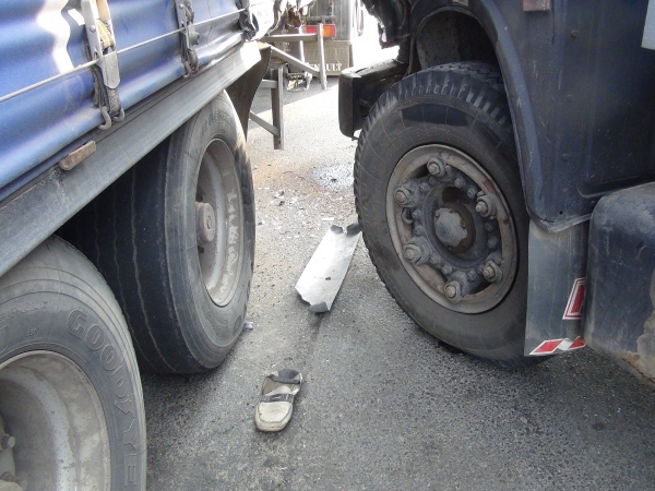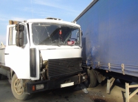 «МАЗ» упал с домкрата, машина покатилась и врезалась в тягач