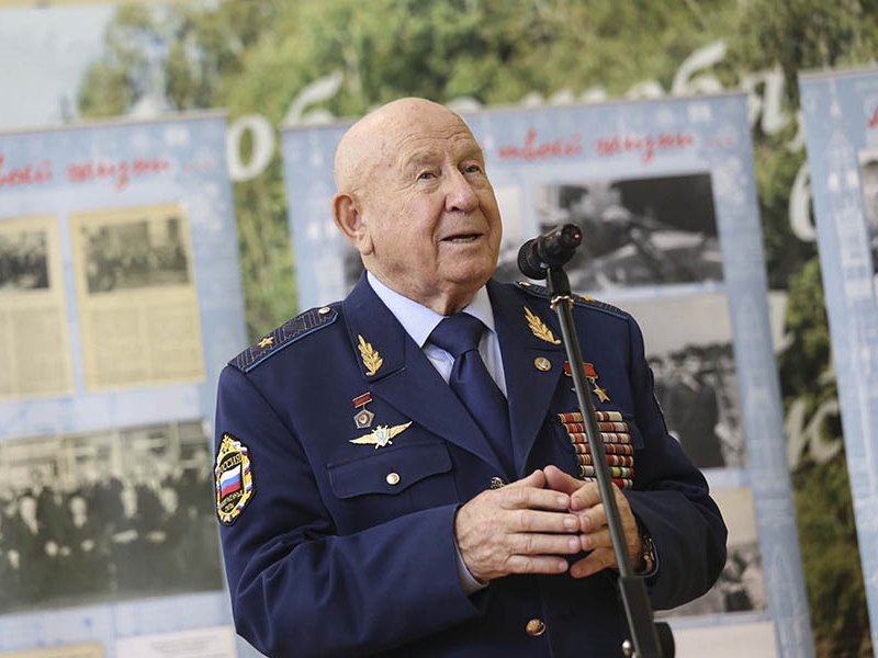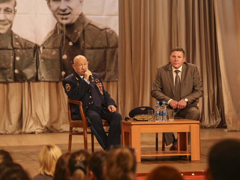 Затем Алексей Леонов и Олег Кувшинников встретились с участниками областного слета военно-патриотических клубов «Долг и честь». Космонавт рассказал ребятам о своем жизненном пути.