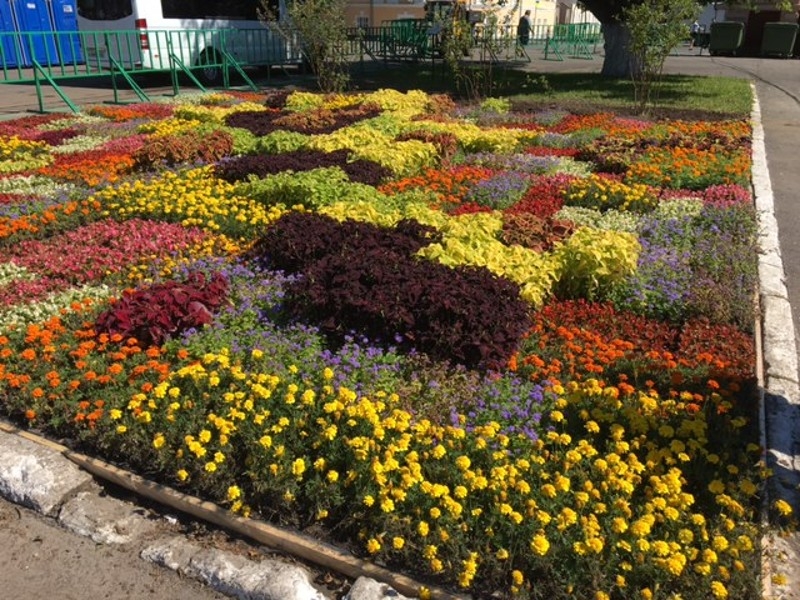 Еще одно новшество, предложенное дизайнерами – не высаживать цветы на клумбу, а выставлять их прямо в ящиках. Клумба формируется по цветовой гамме и высоте растений. В такой вариации сделана экспериментальная клумба у Поклонного креста на площади Революции. Плюс – легко менять увядшие цветы на свежие, просто заменив ящик, сообщает ИА «СеверИнформ».
