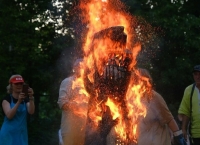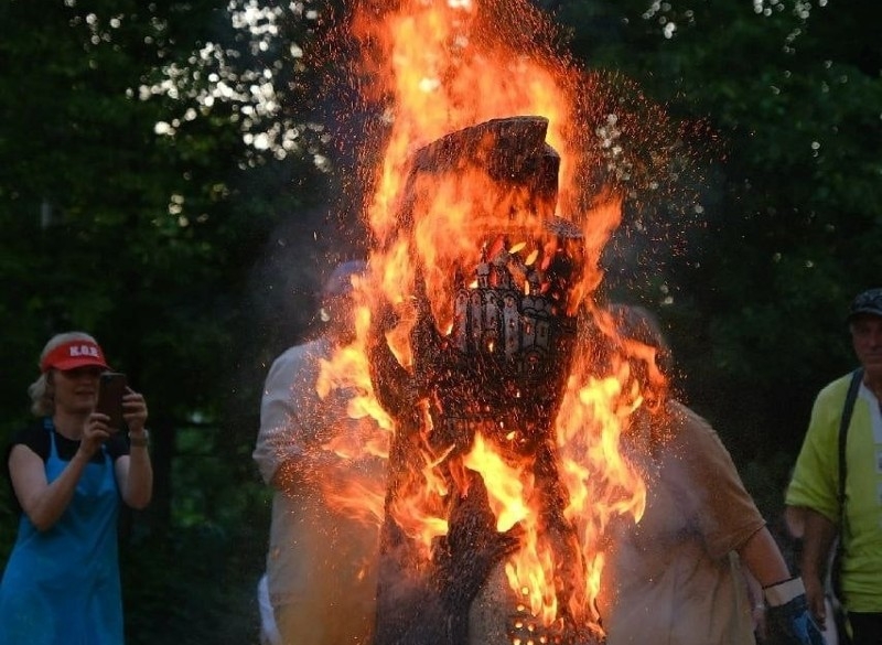 Скульптура состоит из двух частей. Высота ее около 120 см, ширина 50 см, уточнили в администрации. Сначала фигуру слепили, просушили и покрыли глазурью. Накануне на глазах у зрителей скульптура прошла обряд второго обжига. Необходимая для этого температура – 1 000 градусов. После завершения работы арт-объект будет выставлен во дворе «Резного палисада», сообщает ИА «СеверИнформ».
