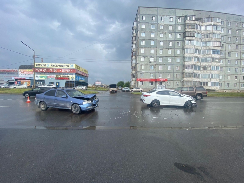 Две машины столкнулись на Рыбинской, 64 утром 25 июля. Около 8:40 не смогли разъехаться «Киа Рио» и «Ниссан Альмера».