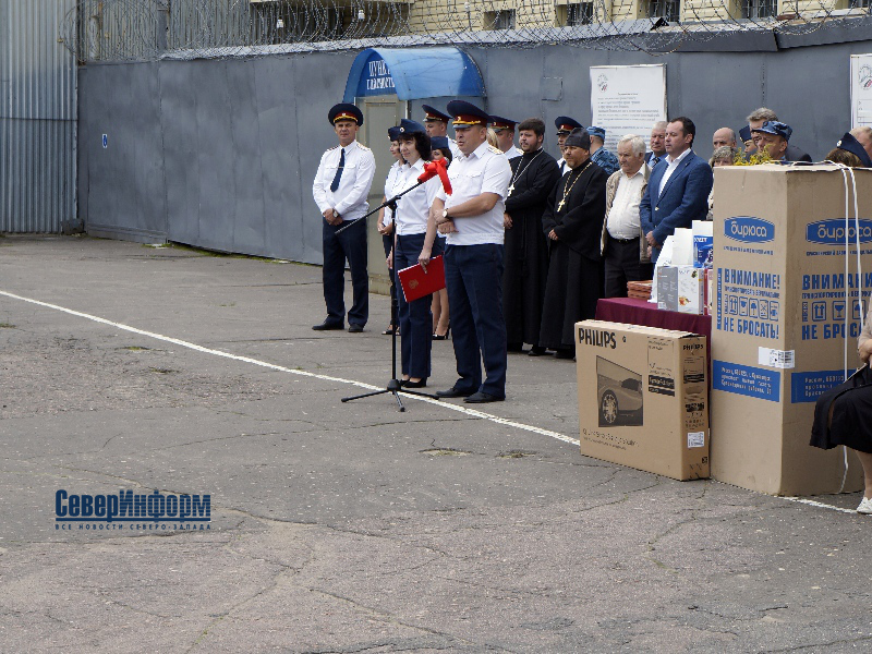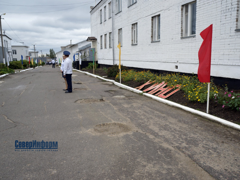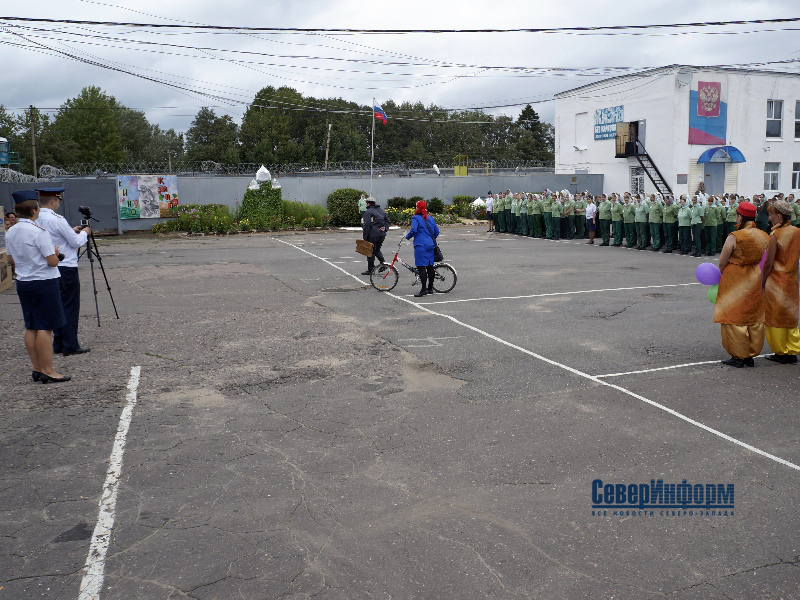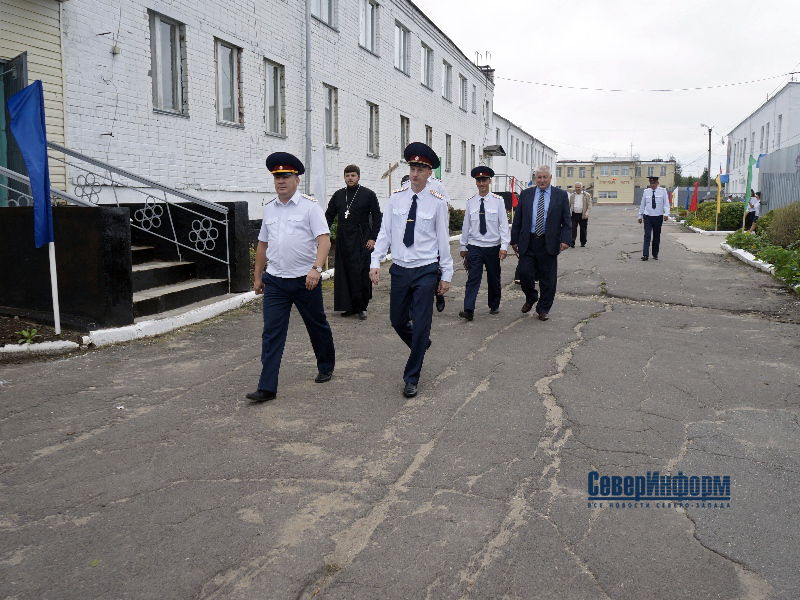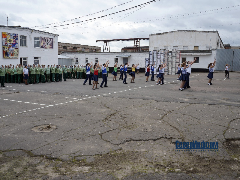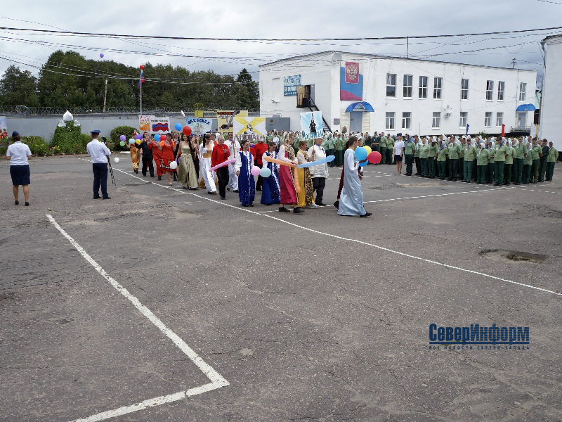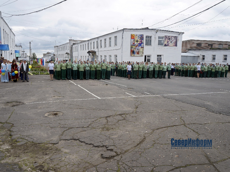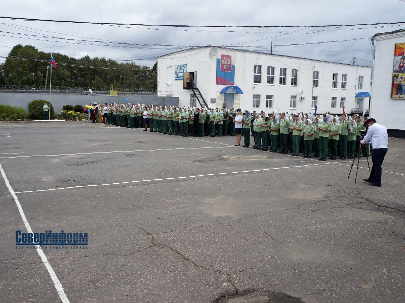 Гостей заключённые и сотрудники учреждения встретили на плацу. После открытия и поднятия флага одна из осуждённых сдала рапорт начальнику УФСИН России по Вологодской области Сергею Савельеву.